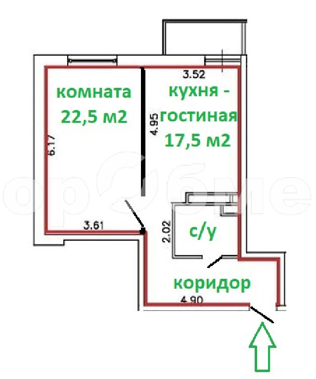 Жилая: 22,5 м2