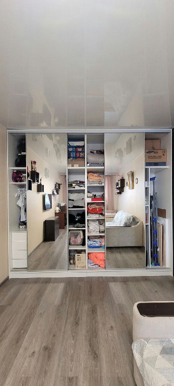 Просторный и функциональный шкаф купе в зале, огромный шкаф в коридоре. На кухне большой и вместительный шкаф, сделанный по индивидуальному заказу.