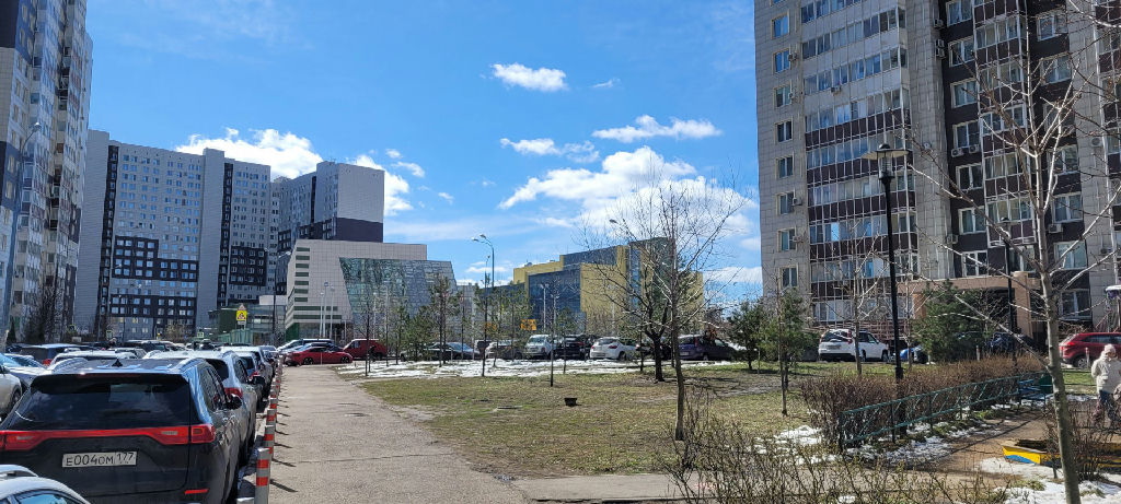 Благоустроенные дворы, современная большая детская площадка с катком (летом -футбольное поле). Многоуровневый паркинг (стоимость аренды машиноместа 10.000 руб/ мес). Новому владельцу отдам место на открытой, охраняемой парковке (5700 р/мес).